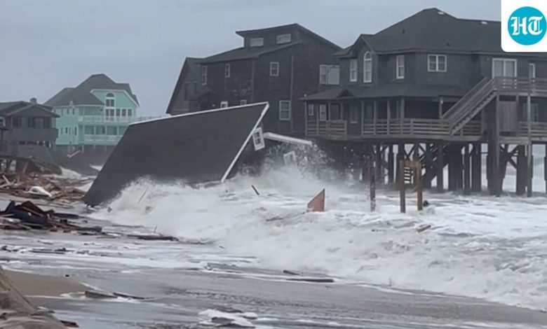 Waves from Hurricanes Humberto and Imelda destroy a home in Buxton, N.C., Tuesday, Sept. 30, 2025. (Heather Jennette via AP)(AP)
